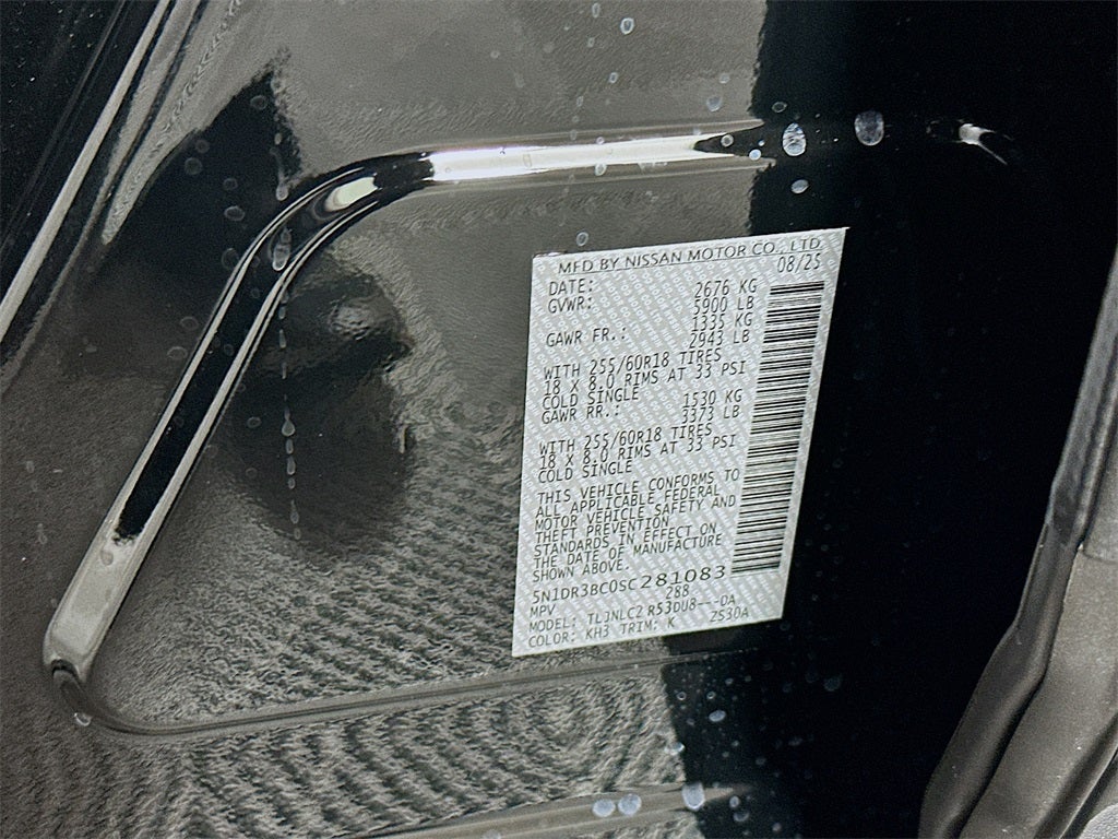 2025 Nissan Pathfinder SV 3.5L V6 DOHC 9-Speed Automatic 4WD 4D Sport Utility Super Black