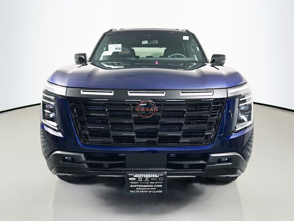 Armada PRO-4X, 4WD, Deep Ocean Blue Pearl, 2nd Row Center Console with Two Cupholders, 2nd Row Outboard Captain's Chairs with Armrests, Adaptive suspension, Apple CarPlay/Android Auto, Auto High-beam Headlights, Auto tilt-away steering wheel, Auto-dimming door mirrors, Auto-leveling suspension, Automatic temperature control, Captain's Chair Seat Package, EZ Flex Second Row Seating System with One Touch Release, Four wheel independent suspension, Front Tow Hooks, Fully automatic headlights, Garage door transmitter: myQ Connected Garage, Genuine wood dashboard insert, Heated door mirrors, Heated front seats, Heated steering wheel, Illuminated Kick Plates, Leather steering wheel, Memory seat, Power door mirrors, Power driver seat, Power Liftgate, Power windows, Pro-4x Leather Quilted Insert Seat Trim, PRO-4X Mud Guards, Radio: NissanConnect with SiriusXM 360L, Rain sensing wipers, Rear window defroster, Rear window wiper, Remote keyless entry, Steering wheel memory, Turn signal indicator mirrors, Wheels: 20 x 8.5J Painted PRO-4X Alloy, 12 Speakers, 3rd row seats: split-bench, 4-Wheel Disc Brakes, ABS brakes, Air Conditioning, Alloy wheels, AM/FM radio: SiriusXM w/360L, Anti-whiplash front head restraints, Auto-dimming Rear-View mirror, Brake assist, Bumpers: body-color, Compass, Cross Bars, Delay-off headlights, Driver door bin, Driver vanity mirror, Dual front impact airbags, Dual front side impact airbags, Electronic Stability Control, Emergency communication system: NissanConnect Services, Front anti-roll bar, Front Bucket Seats, Front Center Armrest, Front dual zone A/C, Front fog lights, Front reading lights, Heated Front Bucket Seats, HVAC memory, Illuminated entry, Knee airbag, Low tire pressure warning, Navigation system: Google Maps, Occupant sensing airbag, Outside temperature display, Overhead airbag, Overhead console, Panic alarm, Passenger door bin, Passenger vanity mirror, Power passenger seat, Power steering, PRO-4X Carpeted Floor Mats with Captain's Chair, Rear air conditioning, Rear anti-roll bar, Rear Bumper Protector, Rear reading lights, Rear seat center armrest, Reclining 3rd row seat, Security system, Speed control, Speed-sensing steering, Speed-Sensitive Wipers, Split folding rear seat, Spoiler, Steering wheel mounted audio controls, Tachometer, Telescoping steering wheel, Tilt steering wheel, Traction control, Trip computer, Variably intermittent wipers, Voltmeter, Top Nissan Dealer in STL Region, Largest Selection of Nissan Inventory in STL Region!, Nissan Assembly in US!, Auffenberg Honesty Commitment!, Armada PRO-4X, 4WD, Deep Ocean Blue Pearl, 2nd Row Center Console with Two Cupholders, 2nd Row Outboard Captain's Chairs with Armrests, Adaptive suspension, Apple CarPlay/Android Auto, Auto High-beam Headlights, Auto tilt-away steering wheel, Auto-dimming door mirrors, Auto-leveling suspension, Automatic temperature control, Captain's Chair Seat Package, EZ Flex Second Row Seating System with One Touch Release, Four wheel independent suspension, Front Tow Hooks, Fully automatic headlights, Garage door transmitter: myQ Connected Garage, Genuine wood dashboard insert, Heated door mirrors, Heated front seats, Heated steering wheel, Illuminated Kick Plates, Leather steering wheel, Memory seat, Power door mirrors, Power driver seat, Power Liftgate, Power windows, Pro-4x Leather Quilted Insert Seat Trim, PRO-4X Mud Guards, Radio: NissanConnect with SiriusXM 360L, Rain sensing wipers, Rear window defroster, Rear window wiper, Remote keyless entry, Steering wheel memory, Turn signal indicator mirrors, Wheels: 20 x 8.5J Painted PRO-4X Alloy. 2025 Nissan Illinois Dealer of the Year! CarFax Top-Rated Dealer Sixth year in a row! Every vehicle is priced to sell and backed by our Customer Service Guaruntee. Located at 1130 Auffenberg Ave. Shiloh, IL 62269, only 18 Minutes from the St.Louis Arch!