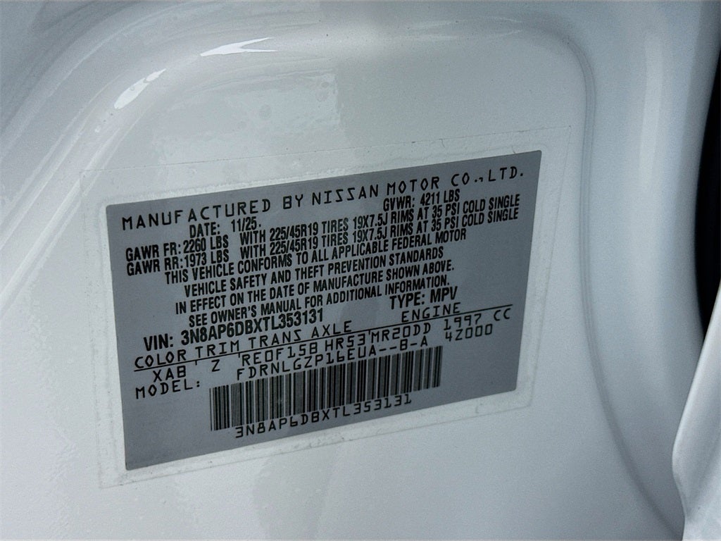 2026 Nissan Kicks SR 2.0L DOHC CVT with Xtronic AWD 4D Sport Utility Aspen White Tricoat/Super Black
