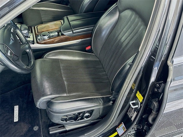 Victoria Black 8-Speed Automatic with SHIFTRONIC 5.0L V8 DGI DOHC 32V Dual CVVT Navigation System, Option Group 01, Power moonroof, 17 Speakers, 4-Wheel Disc Brakes, ABS brakes, Adaptive suspension, Air Conditioning, Alloy wheels, AM/FM radio: SiriusXM, Auto High-beam Headlights, Auto tilt-away steering wheel, Auto-dimming door mirrors, Auto-dimming Rear-View mirror, Auto-leveling suspension, Automatic temperature control, Bodyside moldings, Brake assist, Bumpers: body-color, Compass, Delay-off headlights, Door auto-latch, Driver door bin, Driver vanity mirror, Dual front impact airbags, Dual front side impact airbags, DVD-Audio, Electronic Stability Control, Emergency communication system: Genesis Connected Services, Exterior Parking Camera Rear, Four wheel independent suspension, Front anti-roll bar, Front Bucket Seats, Front Center Armrest, Front dual zone A/C, Front fog lights, Front reading lights, Fully automatic headlights, Garage door transmitter: HomeLink, Genuine wood dashboard insert, Genuine wood door panel insert, Head restraints memory, Heads-Up Display, Heated & Vented Front Bucket Seats w/Memory, Heated door mirrors, Heated front seats, Heated rear seats, Heated steering wheel, Illuminated entry, Knee airbag, Leather Shift Knob, Leather steering wheel, Low tire pressure warning, Memory seat, Nappa Leather Seating Surfaces, Occupant sensing airbag, Outside temperature display, Overhead airbag, Overhead console, Panic alarm, Passenger door bin, Passenger vanity mirror, Power adjustable front head restraints, Power adjustable rear head restraints, Power door mirrors, Power driver seat, Power passenger seat, Power steering, Power windows, Radio: AM/FM/HD/SiriusXM/CD/DVD Audio System, Rain sensing wipers, Rear air conditioning, Rear anti-roll bar, Rear reading lights, Rear seat center armrest, Rear side impact airbag, Rear Window Blind, Rear window defroster, Remote CD player, Remote keyless entry, Security system, Speed control, Speed-sensing steering, Speed-Sensitive Wipers, Steering wheel memory, Steering wheel mounted audio controls, Tachometer, Telescoping steering wheel, Tilt steering wheel, Traction control, Trip computer, Turn signal indicator mirrors, Variably intermittent wipers, Ventilated front seats, Ventilated rear seats, Wheels: 19 Chrome Alloy, Navigation System, Option Group 01, Power moonroof.