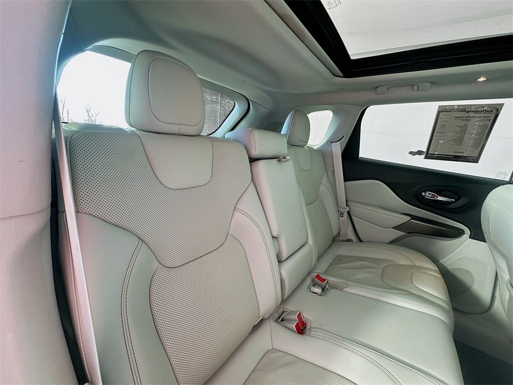 Clean CARFAX. 2020 Jeep Cherokee Limited 2.0L I4 DOHC 9-Speed 948TE Automatic 4WD 4D Sport Utility Bright White Clearcoat 21/29 City/Highway MPG Cherokee Limited, 4D Sport Utility, 2.0L I4 DOHC, 4WD, Bright White Clearcoat, Ski Gray/Black w/Premium Leather Trimmed Bucket Seats, Power Front/Fixed Rear Full Sunroof, Power Liftgate, Quick Order Package 2YG, Wheels: 18 x 7.0 Painted Diamond Cut Aluminum, 10 Speakers, 3.251 Axle Ratio, 3.734 Axle Ratio, 4-Wheel Disc Brakes, 8.4 Touchscreen Display, ABS brakes, Air Conditioning, Alloy wheels, AM/FM radio: SiriusXM, Anti-whiplash front head restraints, Apple CarPlay, Apple CarPlay/Android Auto, Audio memory, Auto-dimming Rear-View mirror, Automatic temperature control, AutoStick Automatic Transmission, Auxiliary Transmission Oil Cooler, Brake assist, Bumpers: body-color, Compass, Delay-off headlights, Driver door bin, Driver vanity mirror, Dual Bright Exhaust Tips, Dual front impact airbags, Dual front side impact airbags, Electronic Stability Control, Engine Oil Cooler, Exterior Mirrors Courtesy Lamps, Exterior Mirrors w/Supplemental Signals, Four wheel independent suspension, Front anti-roll bar, Front Bucket Seats, Front Center Armrest, Front dual zone A/C, Front fog lights, Front reading lights, Fully automatic headlights, Garage door transmitter, Google Android Auto, GPS Antenna Input, Heated door mirrors, Heated front seats, Heated steering wheel, Illuminated entry, Integrated Voice Command w/Bluetooth®, Knee airbag, Leather Shift Knob, Low tire pressure warning, Memory seat, Normal Duty Suspension, Occupant sensing airbag, Outside temperature display, Overhead airbag, Overhead console, Panic alarm, ParkView Rear Back-Up Camera, Passenger door bin, Passenger vanity mirror, Power door mirrors, Power driver seat, Power passenger seat, Power steering, Power windows, Premium Leather Trimmed Bucket Seats, Radio data system, Radio: Uconnect 4 w/8.4 Display, Rear anti-roll bar, Rear reading lights, Rear seat center armrest, Rear side impact airbag, Rear window defroster, Rear window wiper, Remote keyless entry, Roof rack: rails only, Security system, SiriusXM Satellite Radio, Speed control, Speed-sensing steering, Split folding rear seat, Spoiler, Steering wheel mounted audio controls, Stop-Start Multiple VSM System, Tachometer, Telescoping steering wheel, Tilt steering wheel, Traction control, Trip computer, Turn signal indicator mirrors, USB Host Flip, Variably intermittent wipers, Voltmeter, Cherokee Limited, 4D Sport Utility, 2.0L I4 DOHC, 4WD, Bright White Clearcoat, Ski Gray/Black w/Premium Leather Trimmed Bucket Seats, Power Front/Fixed Rear Full Sunroof, Power Liftgate, Quick Order Package 2YG, Wheels: 18 x 7.0 Painted Diamond Cut Aluminum. We do things differently at Auffenberg CDJR. Every vehicle is priced to sell and backed by our Auffenberg Honestly Policy. Located at Auffenberg CDJR 1108 Auffenberg Ave. Shiloh, IL. Located at Auffenberg CDJR. 1108 Auffenberg Ave. Shiloh, IL 62269.