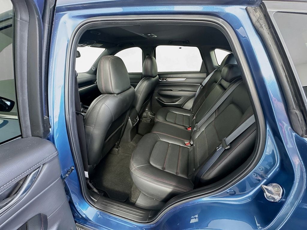 Certified. CARFAX One-Owner. 2022 Mazda CX-5 2.5 Turbo 2.5L I4 6-Speed Automatic AWD 4D Sport Utility Eternal Blue Mica 22/27 City/Highway MPG Mazda Certified Pre-Owned Certified, 10 Speakers, 4-Wheel Disc Brakes, 4.411 Axle Ratio, ABS brakes, Air Conditioning, Alloy wheels, AM/FM radio: SiriusXM, AppLink/Apple CarPlay and Android Auto, Auto High-beam Headlights, Auto-dimming Rear-View mirror, Automatic temperature control, Brake assist, Bumpers: body-color, Delay-off headlights, Driver door bin, Driver vanity mirror, Dual front impact airbags, Dual front side impact airbags, E911 Automatic Emergency Notification, Electronic Stability Control, Emergency communication system: MAZDA CONNECT, Exterior Parking Camera Rear, Four wheel independent suspension, Front anti-roll bar, Front Bucket Seats, Front Center Armrest w/Storage, Front dual zone A/C, Front reading lights, Fully automatic headlights, Garage door transmitter: HomeLink, Heads-Up Display, Heated door mirrors, Heated front seats, Heated rear seats, Heated steering wheel, Heated/Ventilated Front Bucket Seats, Illuminated entry, Infotainment System Voice Command, Leather Seat Trim, Leather Shift Knob, Low tire pressure warning, Memory seat, Multifunction Commander Control, Occupant sensing airbag, Outside temperature display, Overhead airbag, Overhead console, Pandora, Panic alarm, Passenger door bin, Passenger vanity mirror, Power door mirrors, Power driver seat, Power Liftgate, Power moonroof, Power passenger seat, Power steering, Power windows, Premium audio system: Bose, Radio Broadcast Data System Program Information, Radio data system, Radio: AM/FM/HD Audio System, Rain sensing wipers, Rear anti-roll bar, Rear reading lights, Rear seat center armrest, Rear window defroster, Rear window wiper, Remote keyless entry, SMS Text Msg Audio Delivery & Reply, Speed control, Speed-sensing steering, Split folding rear seat, Spoiler, Steering wheel mounted audio controls, Tachometer, Telescoping steering wheel, Tilt steering wheel, Traction control, Trip computer, Turn signal indicator mirrors, Variably intermittent wipers, Ventilated front seats, Wheels: 19 x 7J Aluminum Alloy. Mazda Certified Pre-Owned Details:
